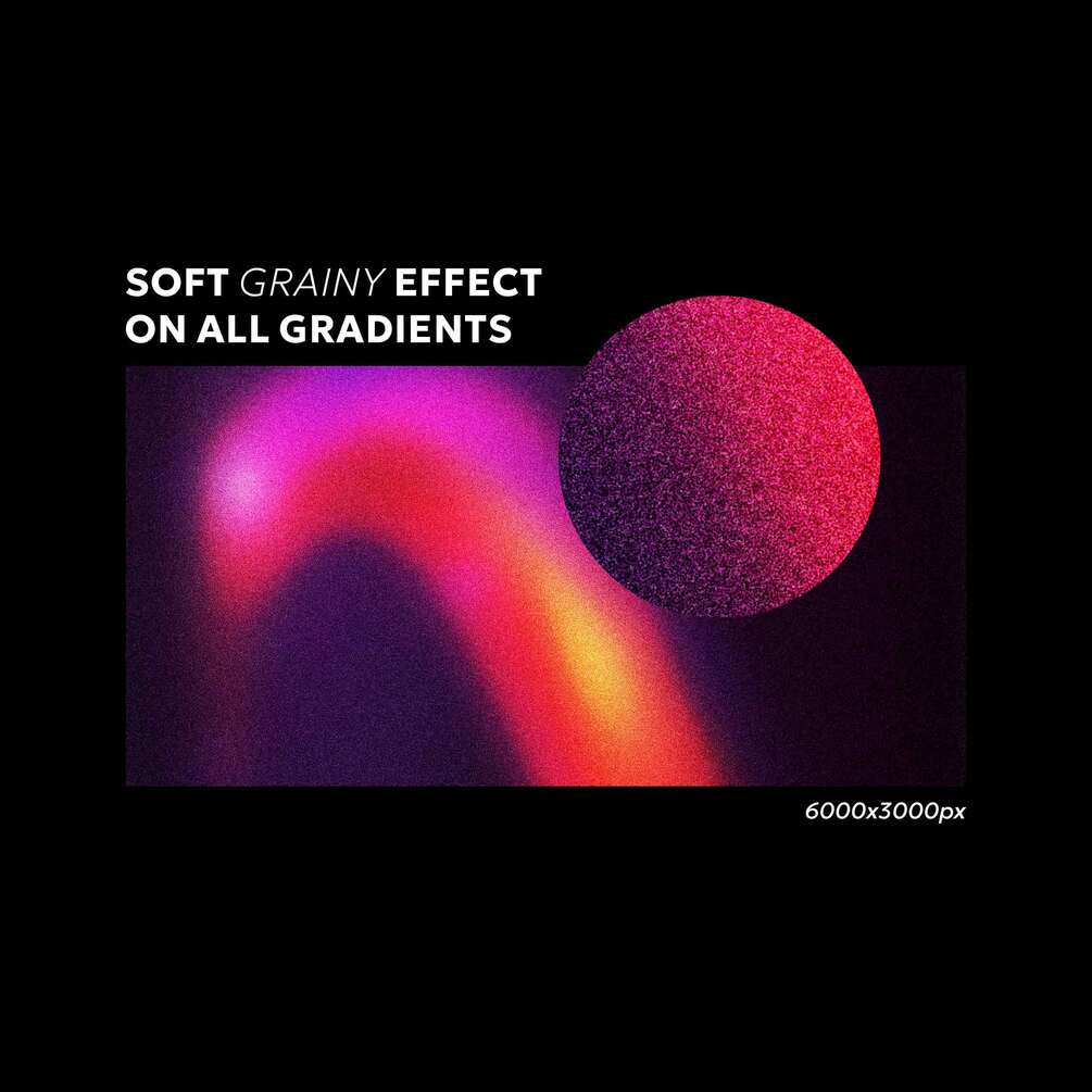 Elevate your designs with Grainy Gradients, a modern trend in digital aesthetics. Featuring 30 color gradients, 30 black-and-white gradients, and a grainy displacement map, this pack is perfect for bold, stylish, and contemporary projects!