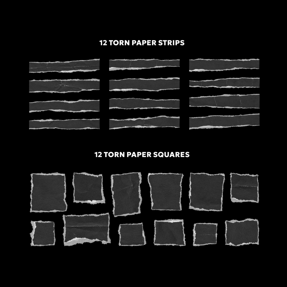 Add a unique, handcrafted edge to your design projects with our "Torn Paper Pack." Perfect for creatives, this pack includes a variety of torn paper elements that can be used in digital collages, photo manipulations, branding, and more